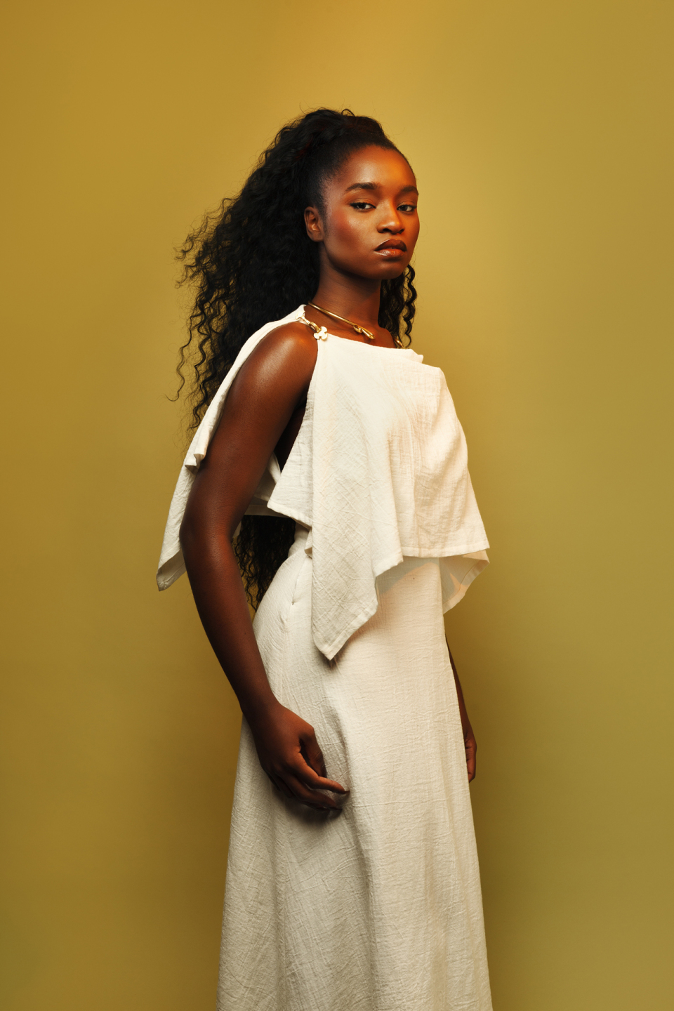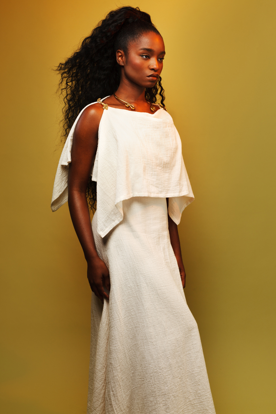 This simple but elegant dress is inspired by the peplos or chiton, a garment worn in ancient Greece. Originally having a gathered waist, this dress has been adjusted to be more fitted, accomodating every figure type. The material is a soft linen. This dress is a joy to wear.